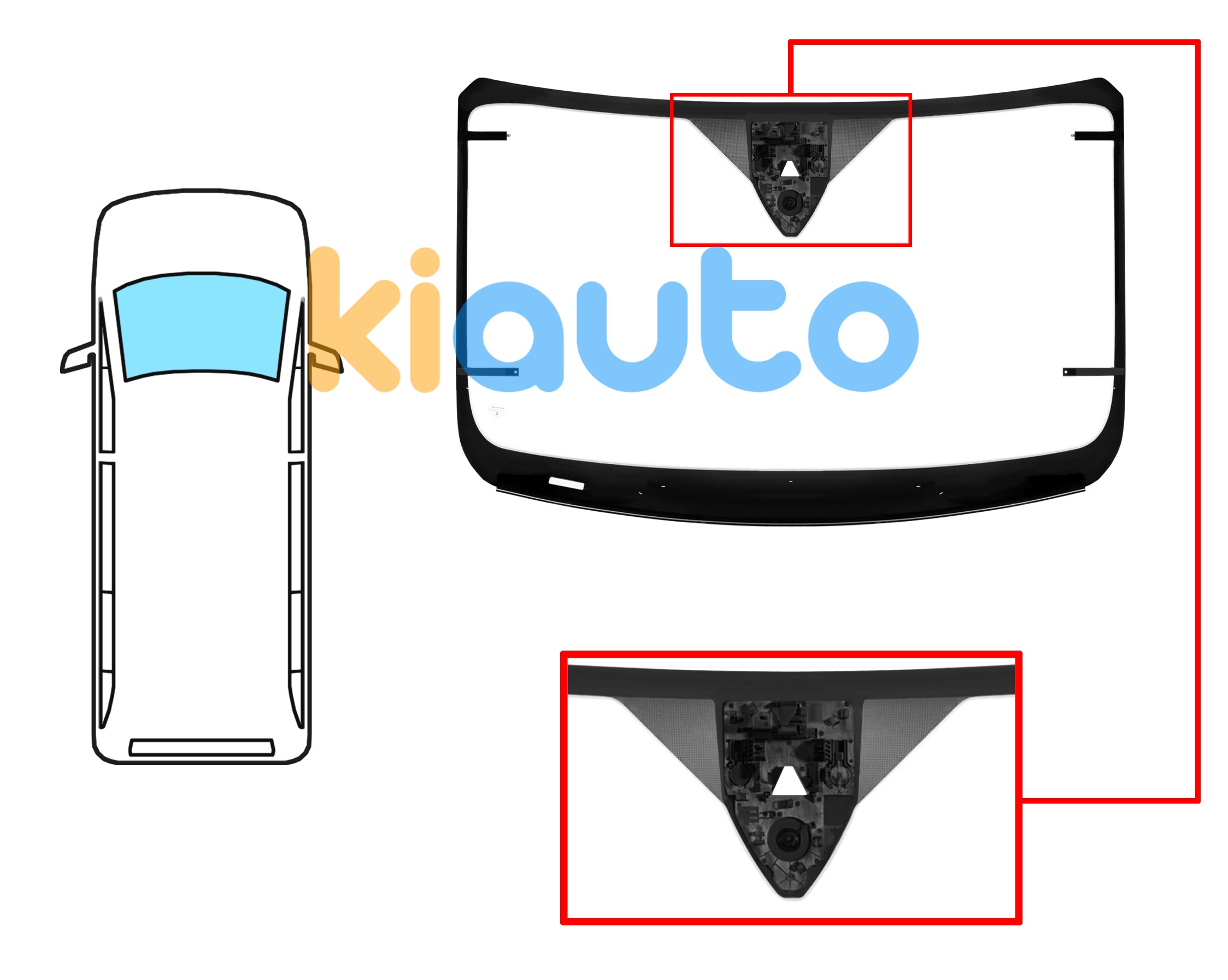 PARE-BRISE FORD TRANSIT 2019-2019 CABINE BASSE / AVANT / VERT / CHAUFFANT / AVEC BASE MIROIR / AVEC CAPTEUR / AVEC SUPPORT CAMÉRA / JOINTS PRÉMONTÉS