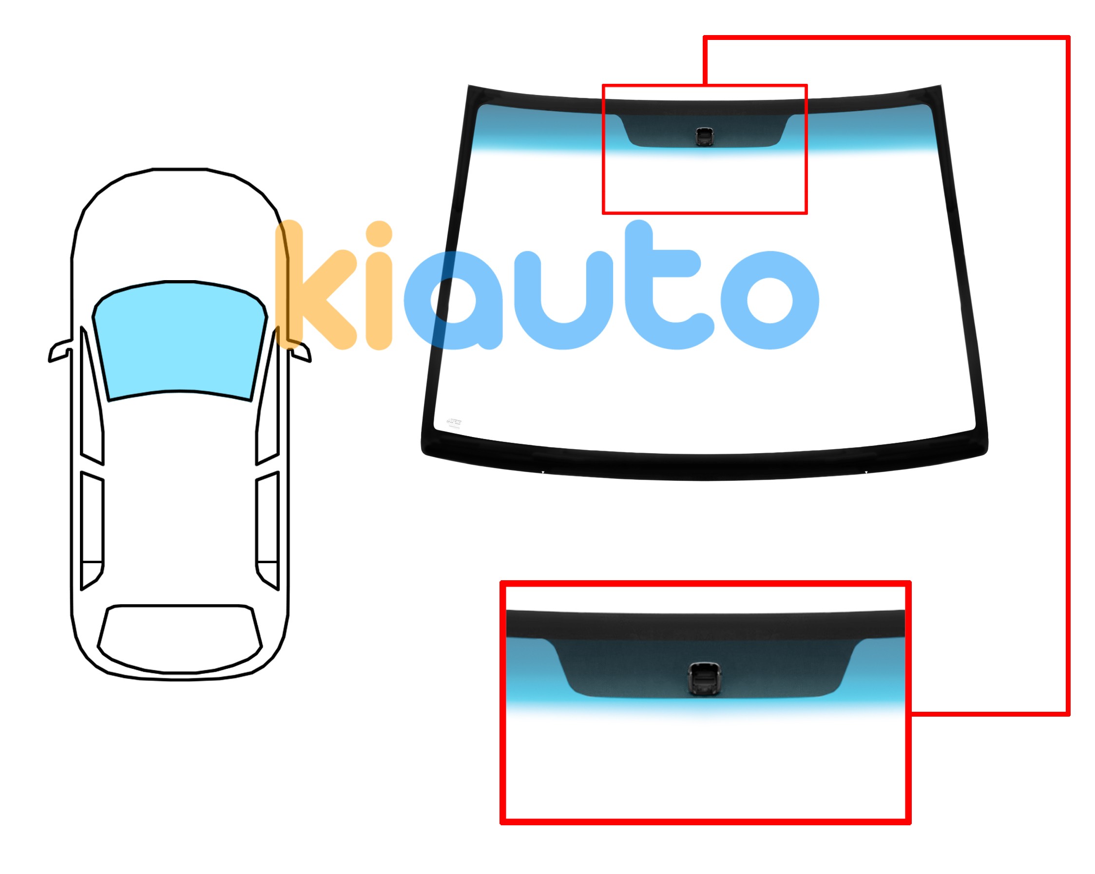 PARE-BRISE HYUNDAI MATRIX 2009-2011 AVANT / VERT BANDE BLEUE / AVEC BASE MIROIR