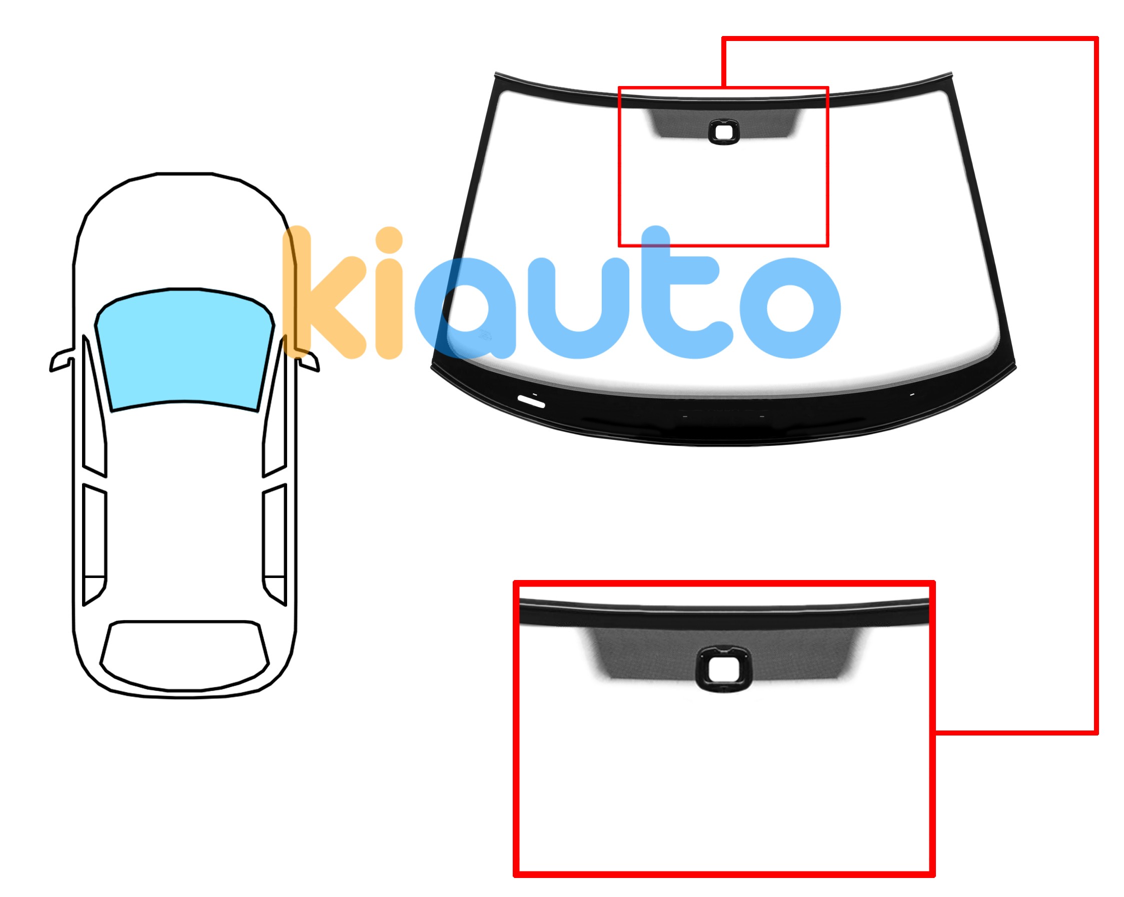 PARE-BRISE SKODA YETI 2009-2013 AVANT / VERT / AVEC BASE MIROIR / AVEC CAPTEUR CARRÉ / JOINTS PRÉMONTÉS EN HAUT ET EN BAS