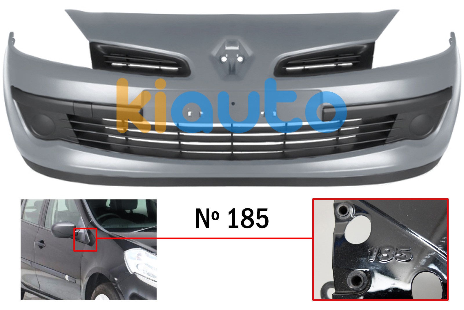 | Pièces Auto Carrosserie neuve pour Renault Clio : Pare-Chocs adaptable de qualité d'origine, conforme à la législation européenne en vigueur. | |